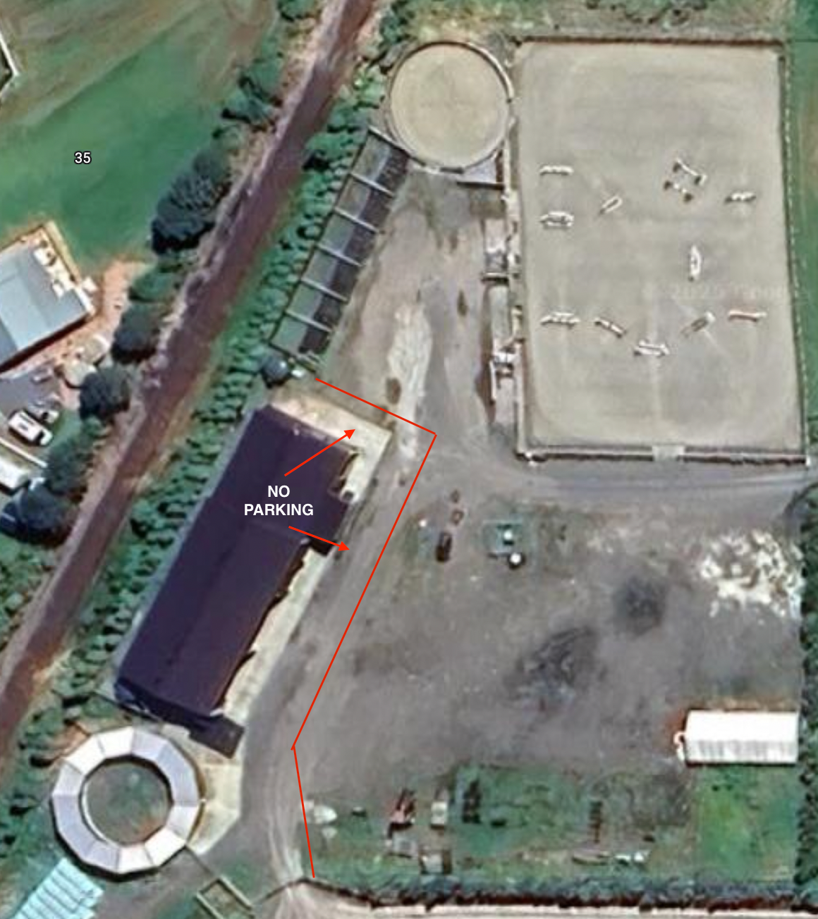 Otherwise, you are welcome to park wherever you like including in the gap between the arena and outdoor yards.